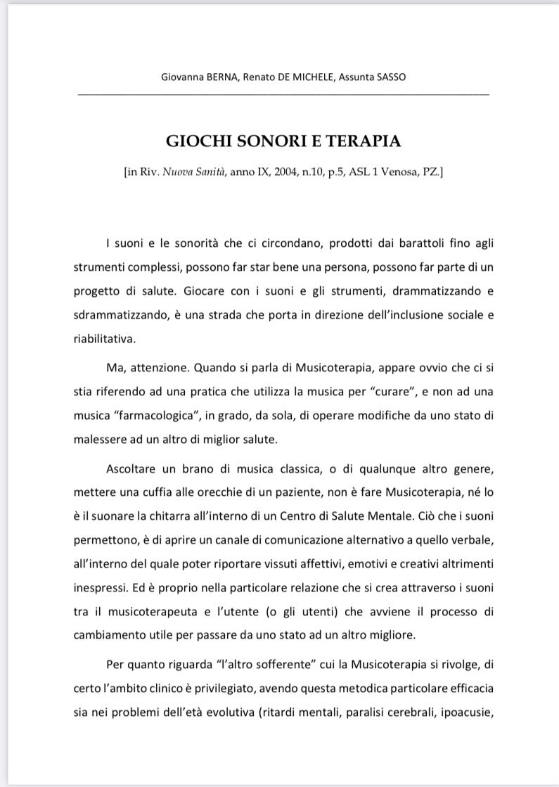 - Sofia di Prisco; Fabio Valerio; PROF. TONY WIGRAM; Serenella Russo ; Asmara Sasso